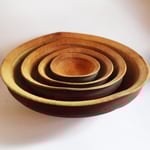 A nested set of four bowls made from a single piece of birch wood. If the bowls are aligned correctly, you can see the grain patterns running through all four.